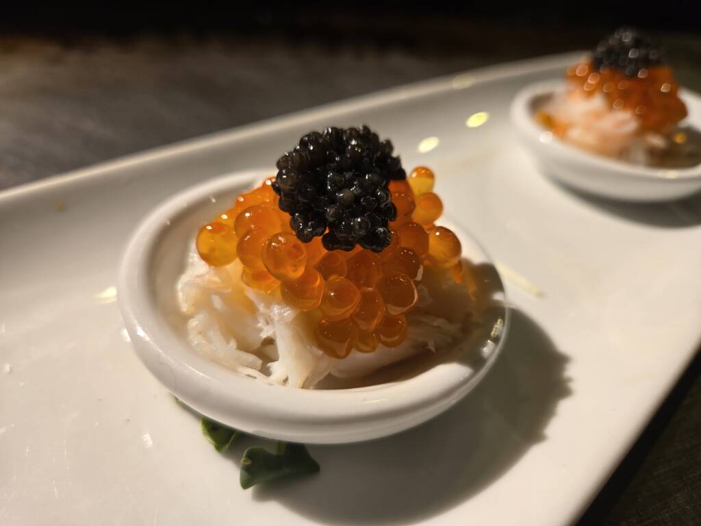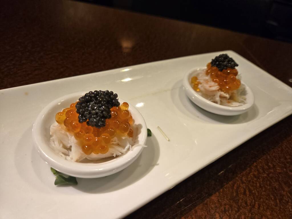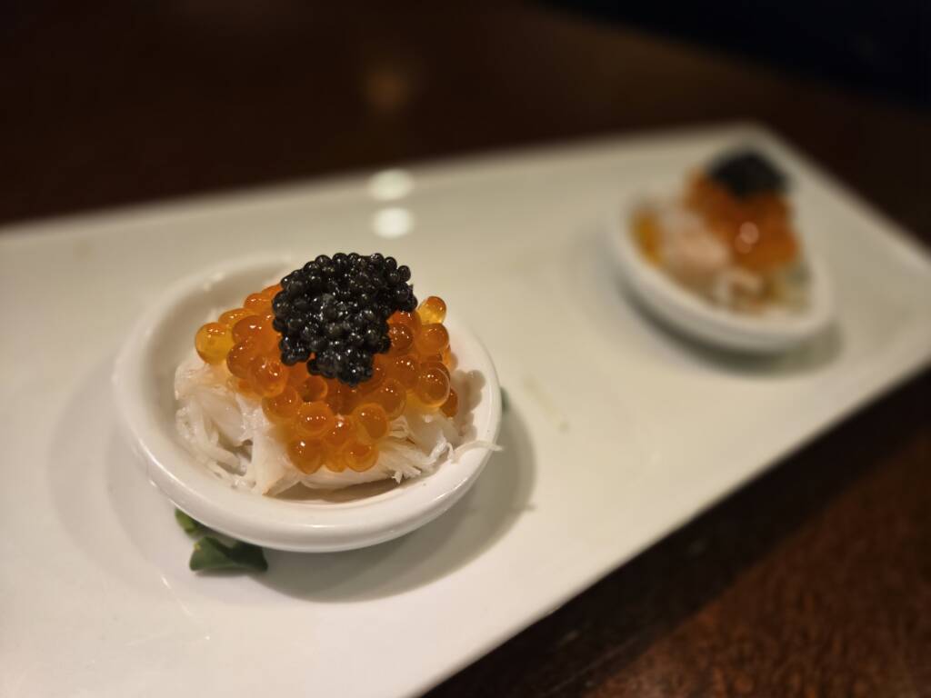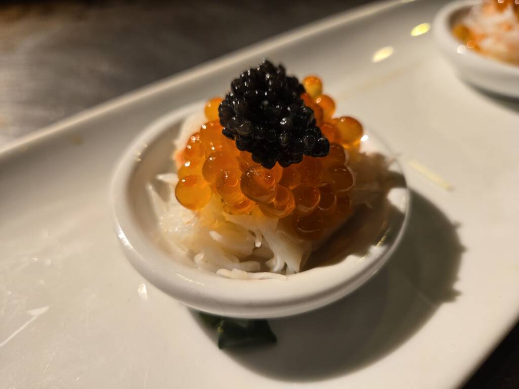 【ズワイ蟹ほぐし•いくら•キャビアのせ】 2026年新メニュー作りました~🎵 ちょっと贅沢な逸品 ズワイ蟹を食べやすいようにほぐして その上に【いくら】のせて またその上に贅沢に【キャビア】 のせちゃいました~♥️ それを1口??で 食べていただこうと思い 一緒にのせちゃいました~ 期間限定なので 是非、お試しあれ~♥️