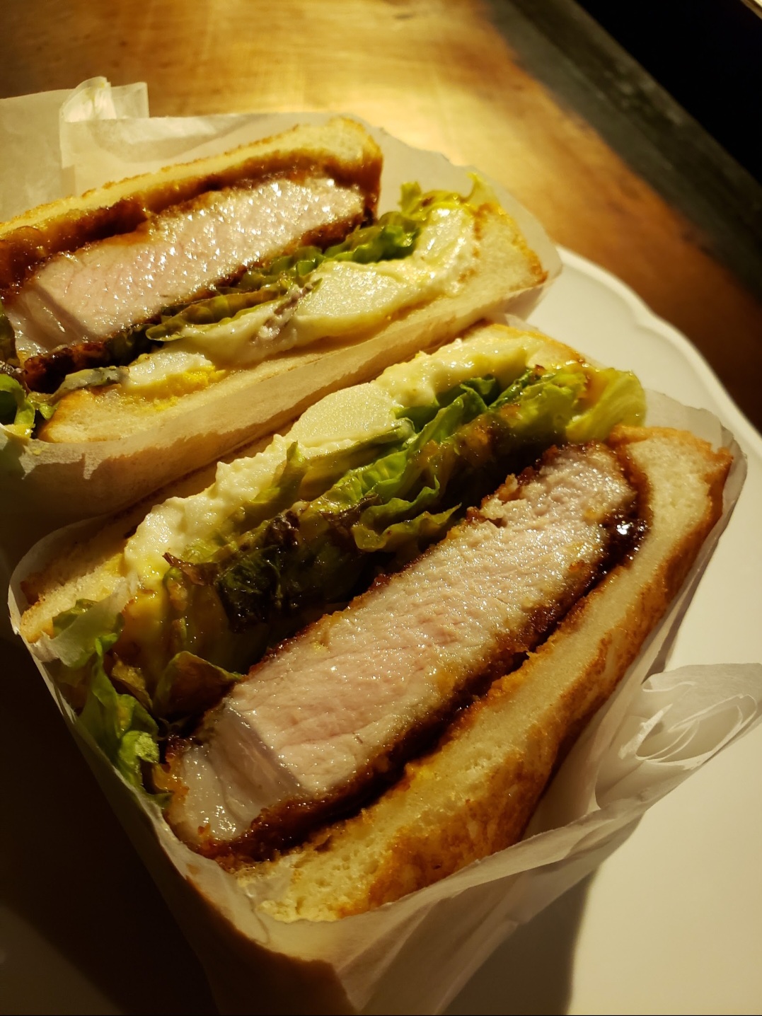 【豚ロースカツ鉄板トースト(特別オーダー)】 お客様からのリクエストオーダー テイクアウト限定ですが、 豚ロースを鉄板で揚げ焼きして パンにはさみました~🎵 かなりのボリュームで~♥️ ご予約いたたければ お作りできますので お気軽にお声かけて下さい~♥️