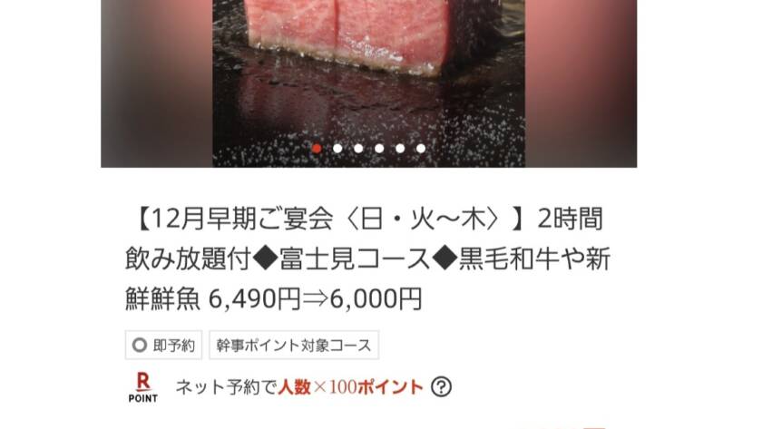 平日(火、水、木)日曜日の限定割引コース