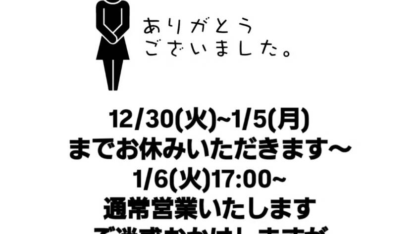 年末年始のお休みいただきます~