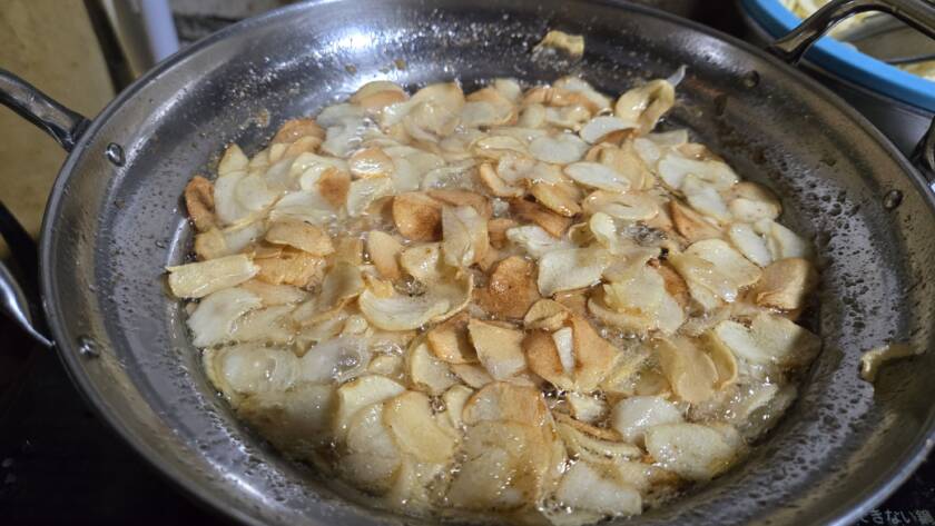 にんにくチップ作成中~🎵